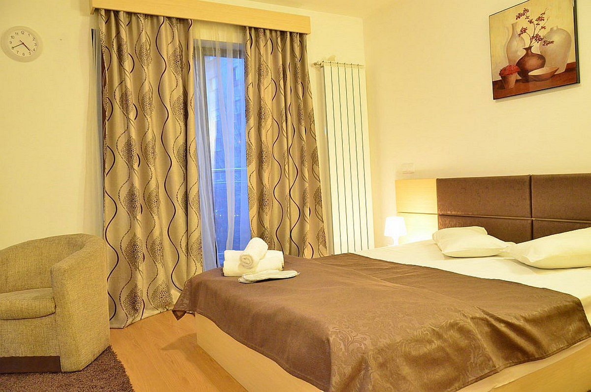 Pentru cazare camera este prevazuta cu lenjerie, pilota, perne si prosoape; in baie exista cosmetice hoteliere precum: pliculete de sampon/gel de dus si sapun, hartie igienica; iar in bucatarie veti gasi burete si detergent pentru vase.