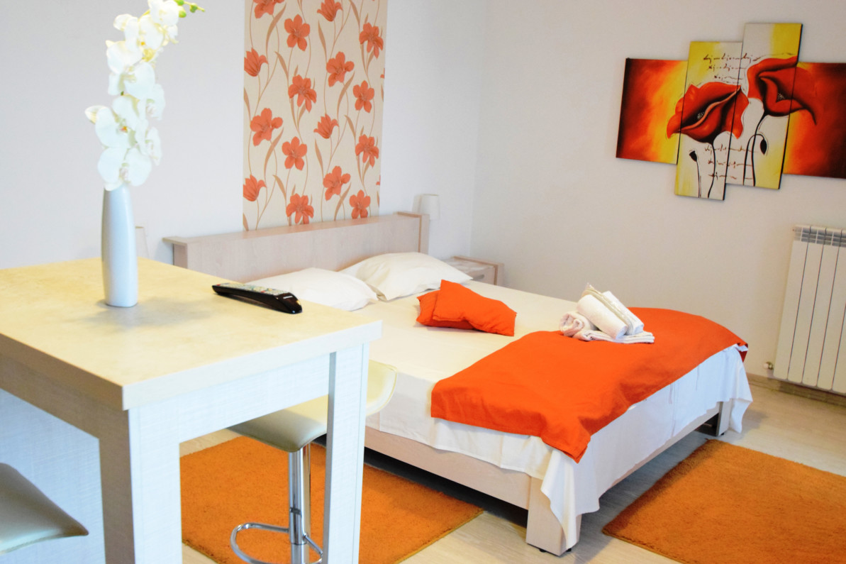 Garsoniera este decorata in culori naturale, in tonuri de portocaliu si accesorizata armonios. Aceasta reprezinta spatiul perfect pentru odihna si relaxare pentru orice turist. Este potrivita fie pentru o calatorie in scop de afaceri sau in scop personal.