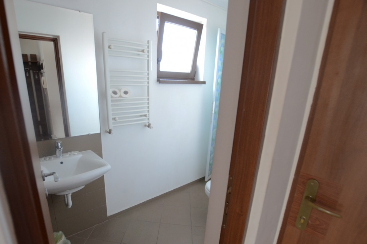 Baia este si ea intima si primitoare, amenajata cu o cabina de dus, grup sanitar, chiuveta cu oglinda. La cerere, putem pune la dispozitia oaspetilor uscator de rufe si masa cu fier de calcat. In baie, oaspetii vor gasi cosmetice hoteliere diverse.